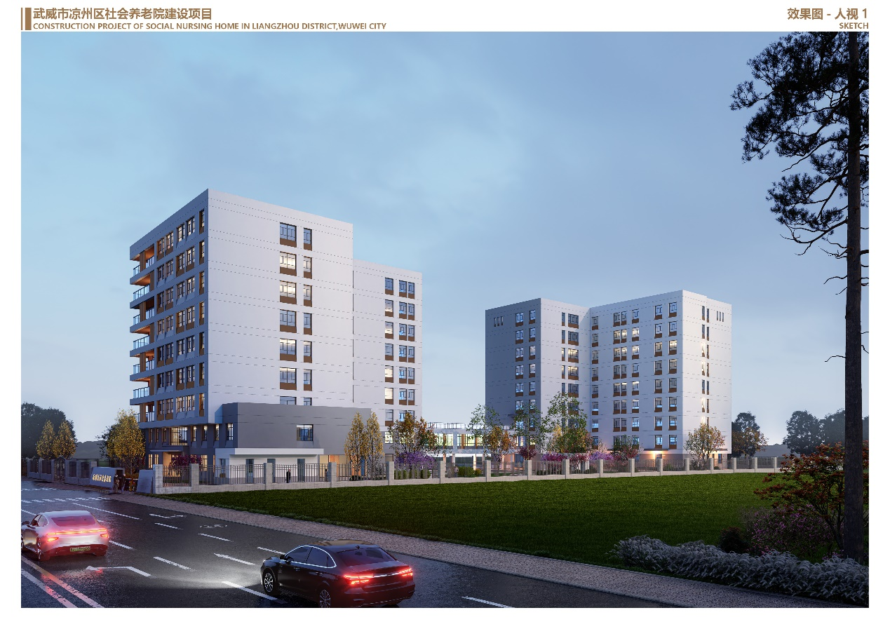 該項目位于武威市涼州區(qū)高壩鎮(zhèn)臺莊村五組,工程內(nèi)容為新建總建筑面積 21250 平方米。其中,地上總建筑面積 18451.28平方米,包括:九層老年養(yǎng)護(hù) 1 號樓一棟、九層老年養(yǎng)護(hù) 2號樓一棟;新建地下停車場總建筑面積 2798.72 平方米。