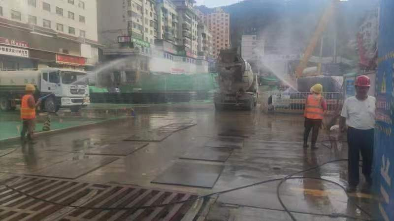 為確保大氣污染防治工作落到實(shí)處,增強(qiáng)項(xiàng)目參建人員大氣污染治理防范意識(shí),保證項(xiàng)目建設(shè)順利進(jìn)行,四公司主要領(lǐng)導(dǎo)靠前指揮,與蘭州市環(huán)保局、城市執(zhí)法局、質(zhì)監(jiān)站等單位溝通協(xié)調(diào),結(jié)合項(xiàng)目地處鬧市區(qū)實(shí)際,制定大氣污染防治措施,并組織項(xiàng)目部全體人員召開(kāi)大氣污染整治專(zhuān)題會(huì)議,對(duì)大氣污染防治工作的相關(guān)要求進(jìn)行部署和落實(shí)。一是全面落實(shí)公司各項(xiàng)決策部署和子(分)公司《關(guān)于進(jìn)一步加強(qiáng)施工大氣污染管理工作的通知》要求,提高思想認(rèn)識(shí),轉(zhuǎn)變工作作風(fēng),落實(shí)工作職責(zé),切實(shí)抓緊抓實(shí)抓好各項(xiàng)措施落實(shí)落細(xì),以實(shí)際舉措防治大氣污染,確保空氣質(zhì)量持續(xù)改善。二是加強(qiáng)宣傳引導(dǎo),發(fā)揮黨建工作引領(lǐng)作用,提高政治站位,緊盯目標(biāo)任務(wù),突出重點(diǎn)工作,堅(jiān)持目標(biāo)導(dǎo)向,劃分責(zé)任區(qū),責(zé)任到人,強(qiáng)化考核問(wèn)效,為安全文明施工生產(chǎn)提供保障。三是狠抓揚(yáng)塵治理。各參建員工要牢固樹(shù)立大局意識(shí),責(zé)任意識(shí)、擔(dān)當(dāng)意識(shí),嚴(yán)格落實(shí)“六個(gè)百分百”要求,齊抓共管,加強(qiáng)施工現(xiàn)場(chǎng)、道路揚(yáng)塵管控,督促各施工作業(yè)隊(duì)文明施工,嚴(yán)格落實(shí)各項(xiàng)防塵抑塵降塵措施,促進(jìn)項(xiàng)目建設(shè)順利推進(jìn)。四是加大揚(yáng)塵污染治理物資設(shè)備的投入。項(xiàng)目部在施工周邊居民樓上安裝噴淋系統(tǒng)噴霧降塵,施工現(xiàn)場(chǎng)發(fā)泡機(jī)噴水抑制塵土飛揚(yáng),有效減少揚(yáng)塵污染。施工場(chǎng)區(qū)道路、加工區(qū)地面進(jìn)行硬化處理,裸露場(chǎng)地進(jìn)行全覆蓋,鉆孔泥漿自然脫水固化后及時(shí)使用封閉式運(yùn)輸車(chē)輛外運(yùn)。車(chē)輛出入口安裝車(chē)輛自動(dòng)沖洗裝置,專(zhuān)人負(fù)責(zé),檢查車(chē)輛外部、底盤(pán)、輪胎處不得沾有污物和泥土,嚴(yán)禁車(chē)輛帶泥上路。五是加大巡查和預(yù)防力度。項(xiàng)目部安排專(zhuān)人加強(qiáng)對(duì)揚(yáng)塵污染源的巡查和檢測(cè),不定時(shí)進(jìn)行場(chǎng)地清潔、灑水,及時(shí)處理?yè)P(yáng)塵污染問(wèn)題。