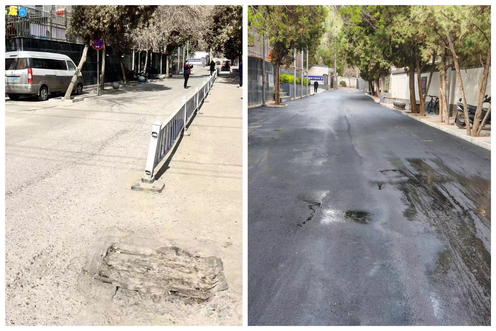 作為轄區(qū)共建單位,在接到培黎街道向陽社區(qū)的求助后,公司高度重視,立即安排道面工程公司與社區(qū)對(duì)接。道面工程公司第一時(shí)間組織相關(guān)人員前往市政巷道路進(jìn)行實(shí)地勘察,根據(jù)現(xiàn)場(chǎng)情況確定施工方法,明確施工任務(wù),制定作業(yè)計(jì)劃。4月8日,道面工程公司組織作業(yè)隊(duì)伍與施工機(jī)械進(jìn)場(chǎng)施工,銑刨拆除混凝土舊路面,提升檢查井,噴灑粘層油,鋪筑4cm瀝青混凝土,連夜施工??傆?jì)花費(fèi)近10萬元,原本破損的路面煥然一新,居民“出行難”的問題得到及時(shí)解決。